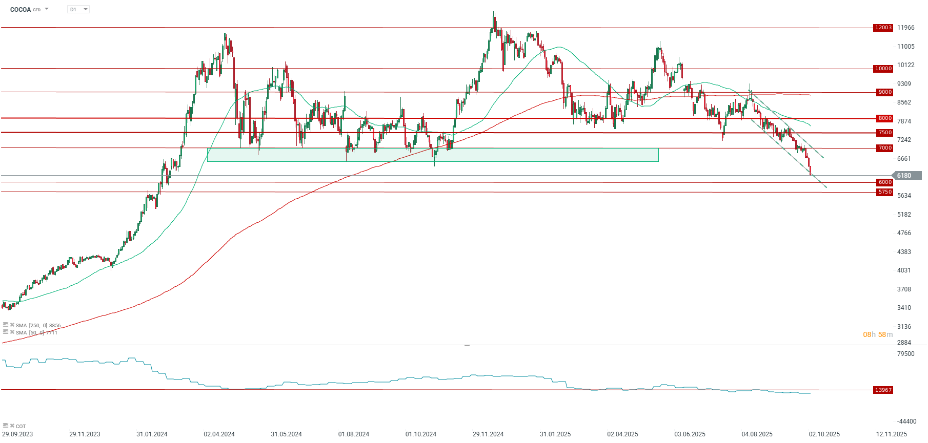 Ceny kakaa dnes klesají o více než 4 %, což představuje třetí den poklesu v tomto měsíci a zároveň třetí den oficiální hlavní sezóny 2025/2026. Od začátku tohoto týdne činí propad již přes 10 %. Za poslední tři měsíce (bez započtení nákladů na rolování) se ceny propadly téměř o 30 %, čímž se kakao stalo nejhůře performující komoditou na světě v posledním období. Ceny se vrátily na úrovně naposledy zaznamenané na začátku roku 2024 a forwardová křivka je téměř plochá, což signalizuje rostoucí jistotu trhu ohledně dodávek.