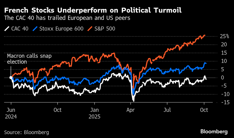 Navzdory širokému býčímu trendu na globálních finančních aktivech zůstává francouzský trh slabý, což je spojováno s oznámením o předčasných volbách v červnu 2024.