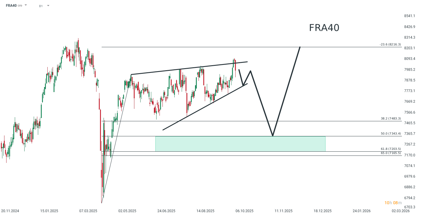 V tomto kontextu je nutná maximální opatrnost. Technické prostředí trhu zatím zůstává relativně stabilní, podpořené americkými indexy a oslabujícím dolarem. Avšak v případě obratu trendu a přenesení napětí mohou být důsledky pro francouzské finanční trhy katastrofální.
