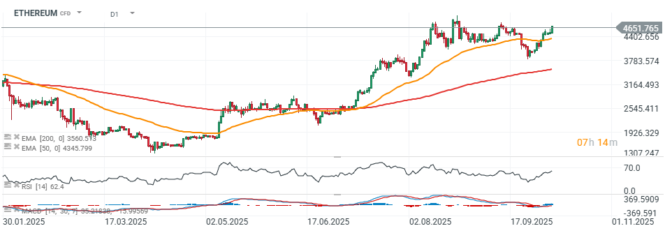 Pokud bude růst pokračovat, dalším klíčovým cílem může být hladina kolem 4 800 USD, což odpovídá letošním maximům.