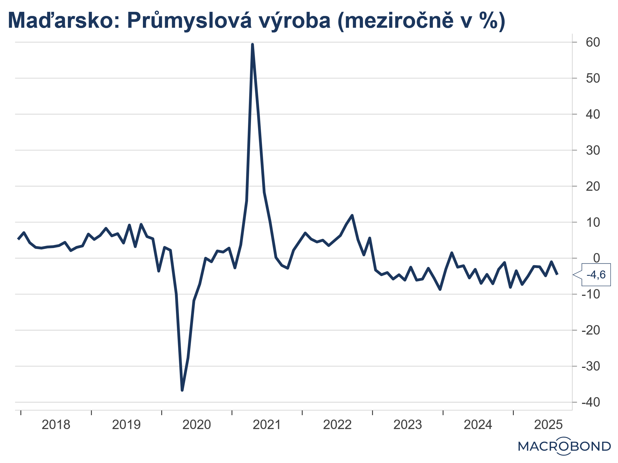 Průmyslová výroba v srpnu klesla o 4,6 % meziročně oproti poklesu o 1 % v červenci. Trhy očekávaly zvolnění výroby o 2,7 % meziročně.