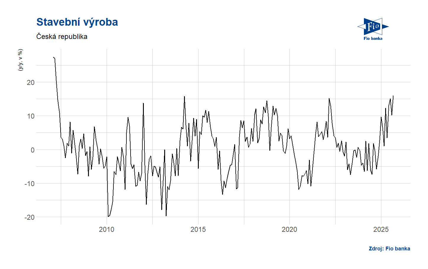 ČR: Stavební výroba v srpnu meziročně vzrostla o 17,1 %