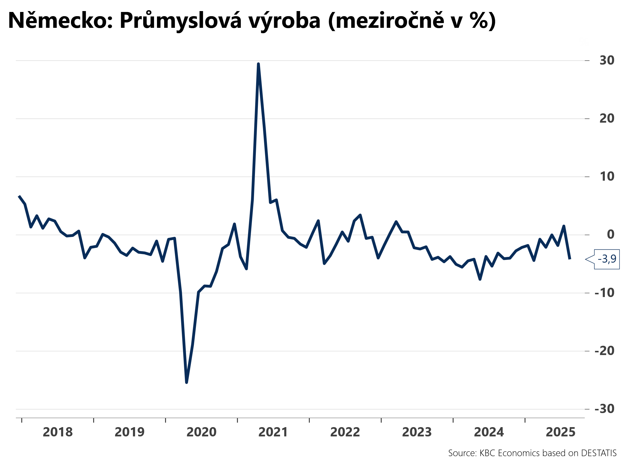 Německo: Průmyslová výroba v srpnu meziročně poklesla o 3,9 %