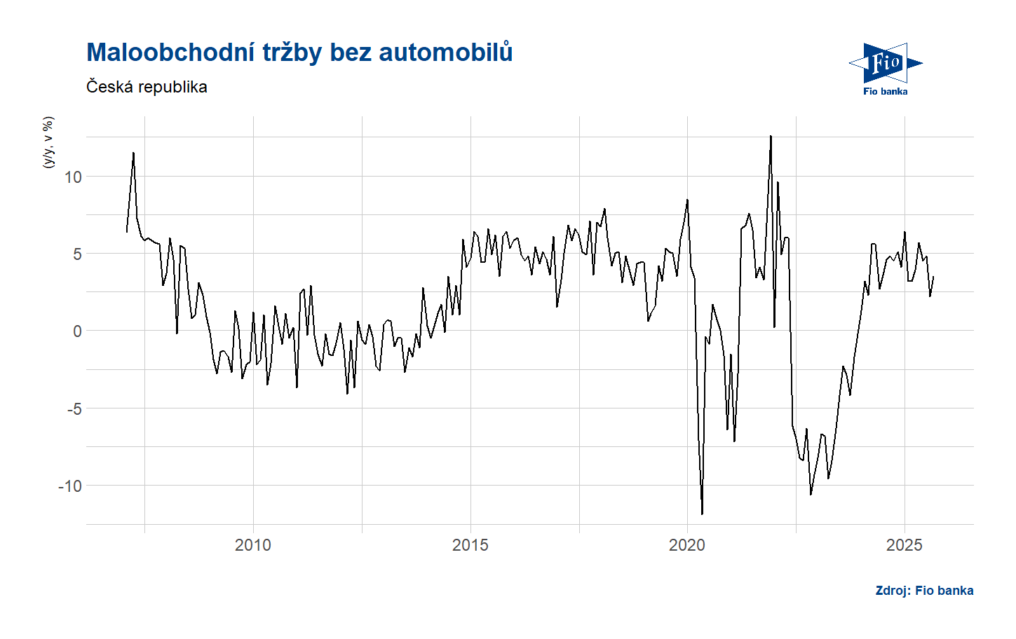 ČR: Maloobchodní tržby bez automobilů v srpnu meziročně vzrostly o 3,5 % při očekávání 3,1 %