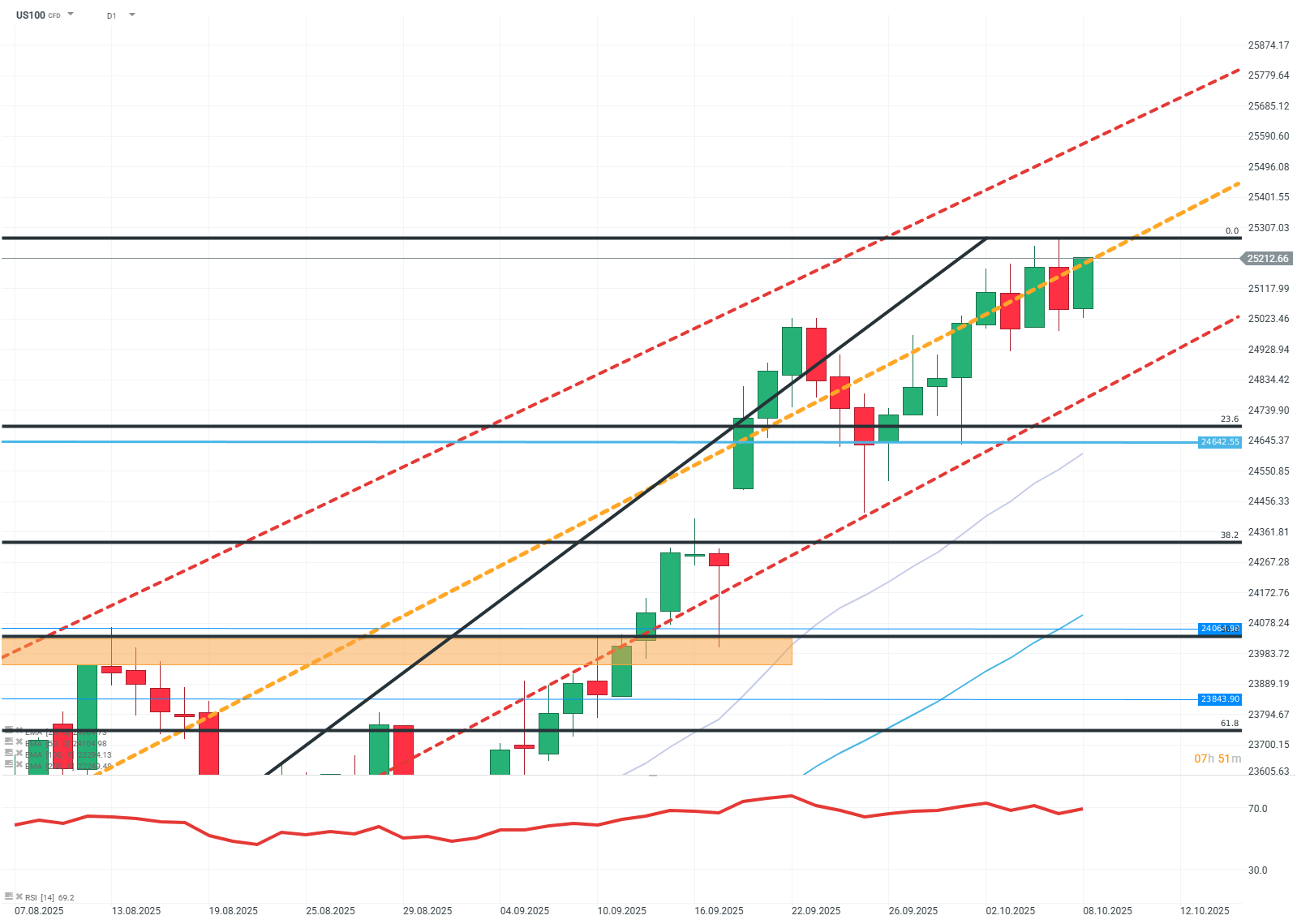 Z technického hlediska se cena nachází pevně v rámci dlouhodobého rostoucího kanálu, jehož spodní hranice již po mnoho měsíců efektivně funguje jako support. Struktura trendu zůstává neporušená a dynamika pohybu naznačuje, že trh je stále pod kontrolou kupců.