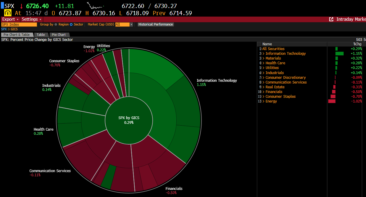 Po otevření trhu nejvíce roste NASDAQ, zatímco Russell 2000 zaostává. Tím pokračuje několikaměsíční trend dominance firem z oblasti AI a technologického sektoru, které získávají stále větší podíl na tržní kapitalizaci a odsouvají menší a tradičnější společnosti mimo zájem investorů.