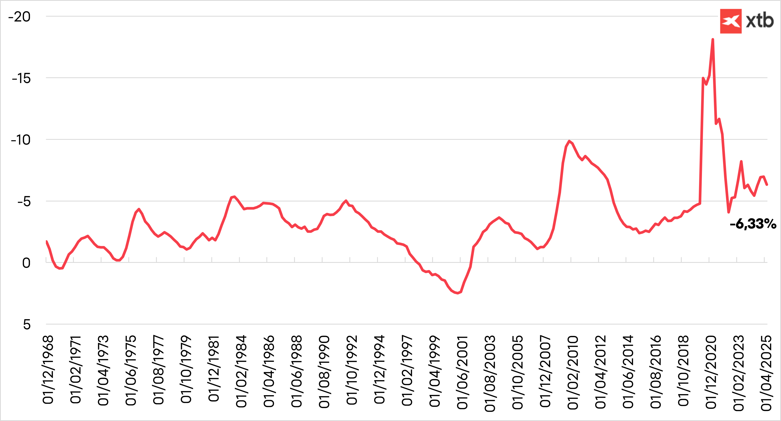 Fiskální deficit USA v procentech HDP. Zdroj: ZDROJ: XTB