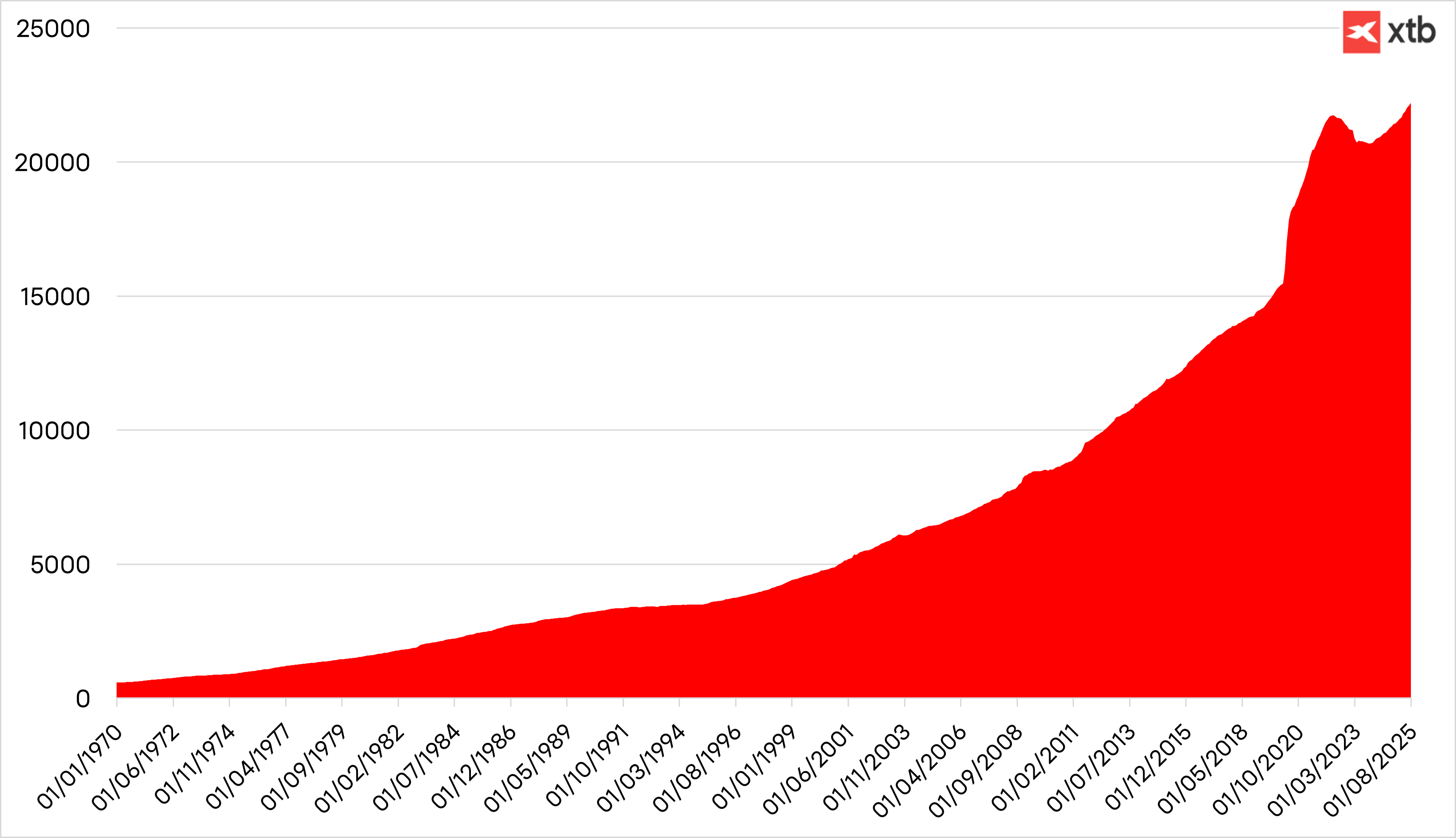 Od té doby mohou centrální banky libovolně rozšiřovat peněžní zásobu. Cykly devalvace, inflace a bublin na trzích aktiv se začaly opakovat. Na každou krizi (1987, 2000, 2008, 2020) reagovaly nové vlny likvidity - a vždy to přineslo stejný vzorec: zrychlující se růst peněz, rostoucí zadlužení a erozi reálné kupní síly.