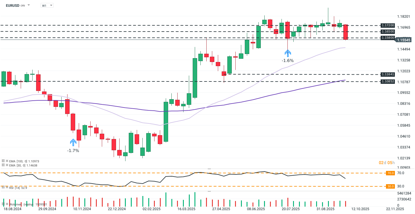 EUR/USD v týdenním intervalu. Zdroj: xStation5