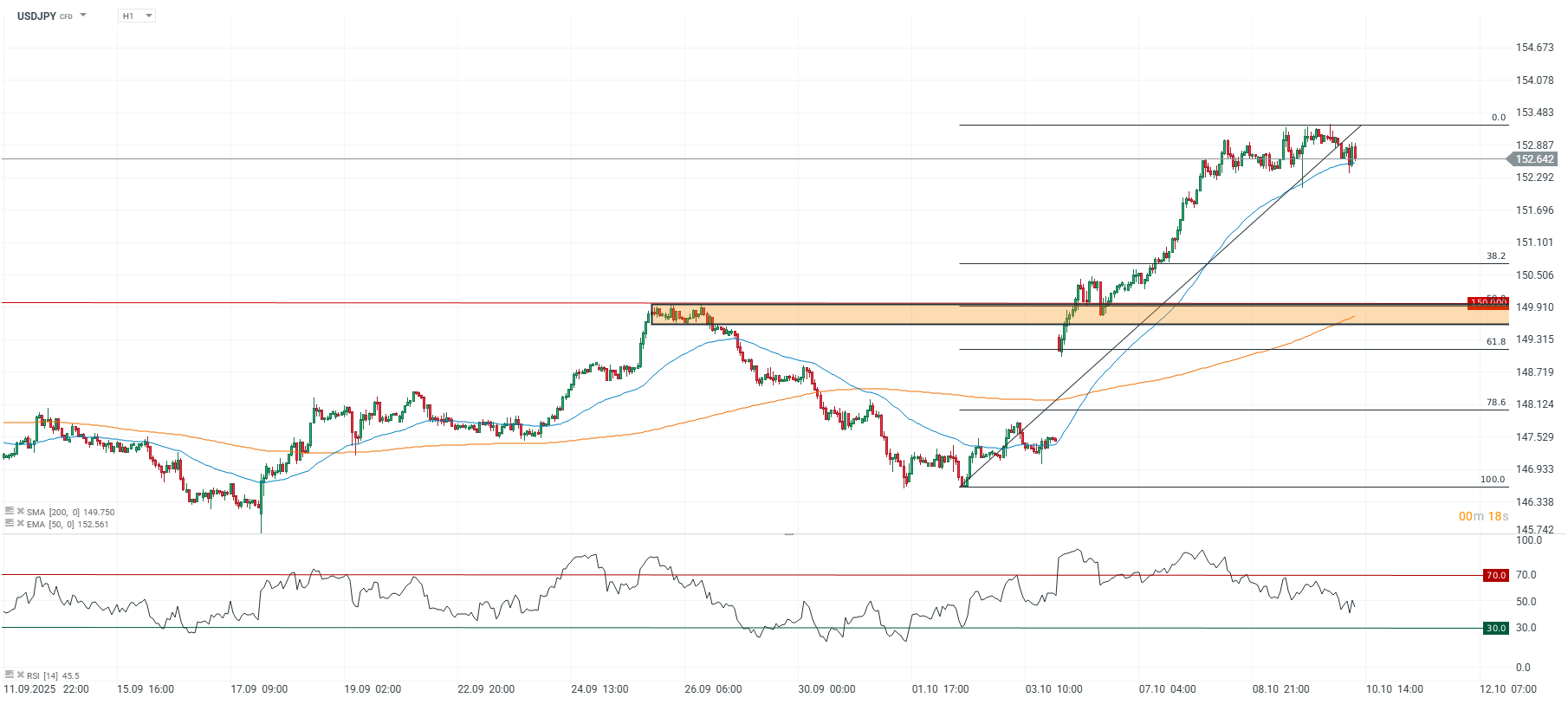 Intradenní Price Action patterny na USD/JPY 10.10.2025