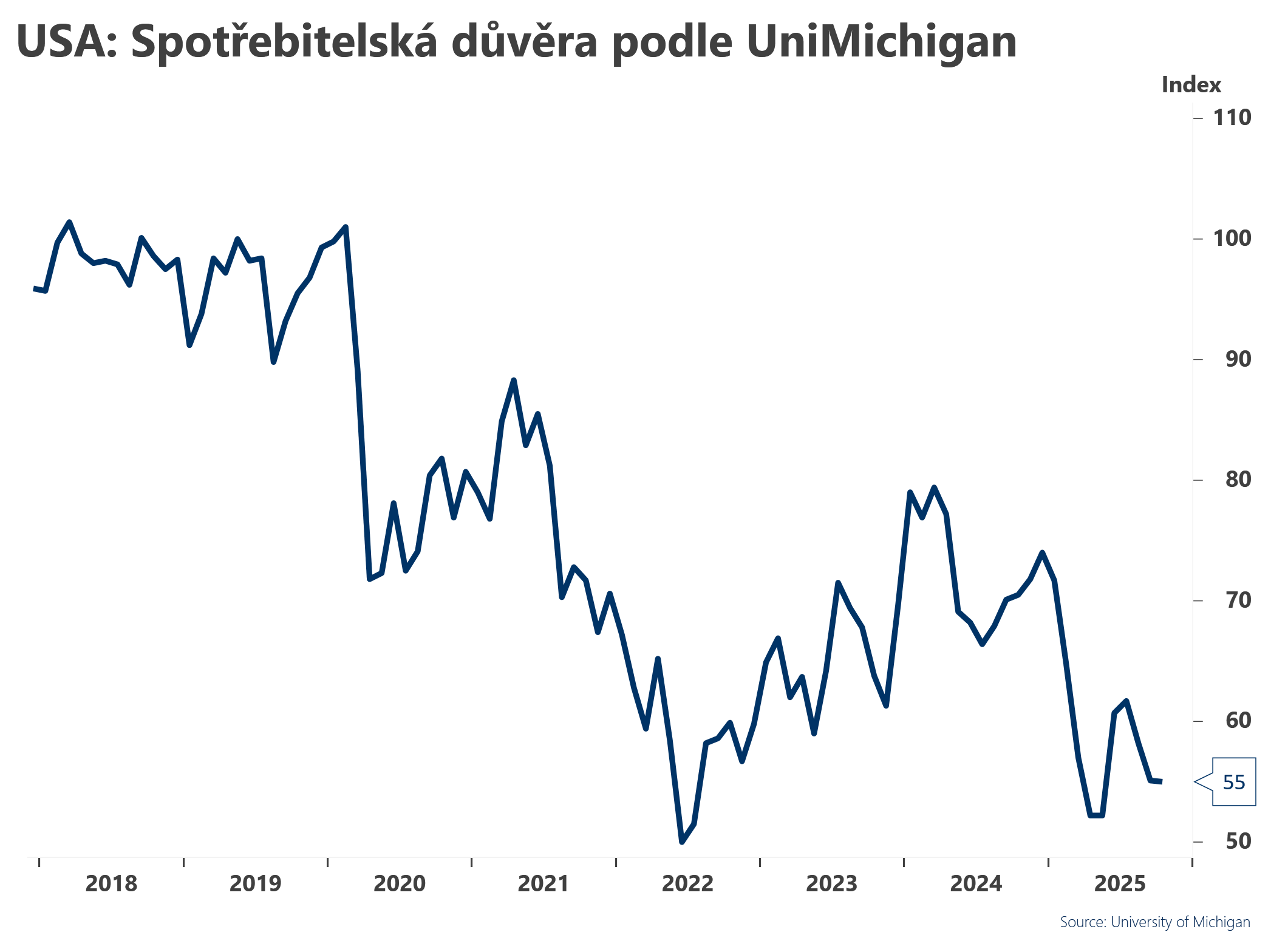 Klíčová slova: Inflace | Spotřebitelská důvěra | ČSOB | Trhy | Pokles | Pokles sentimentu | Práce | Statistiky | Důvěra | University of Michigan | Michigan |