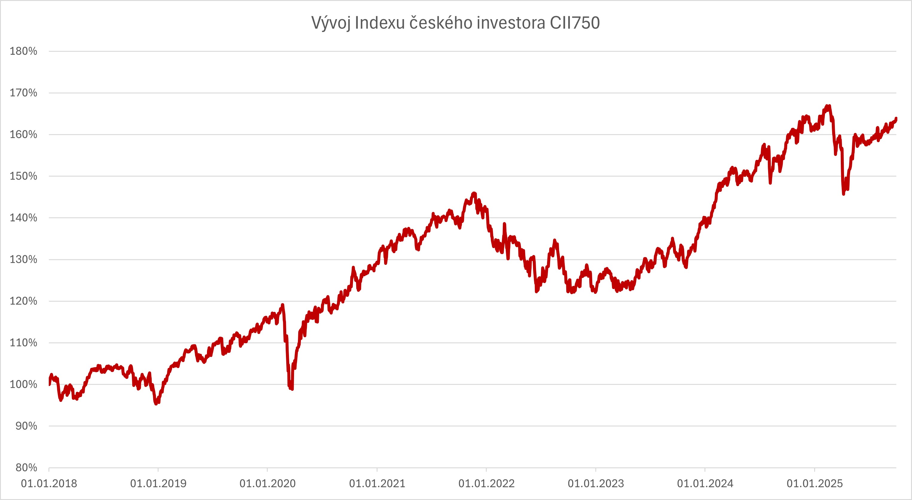 Zdroj: Index českého investora CII750, Swiss Life Select a LSEG, vychází ze základu k 1. 1. 2018