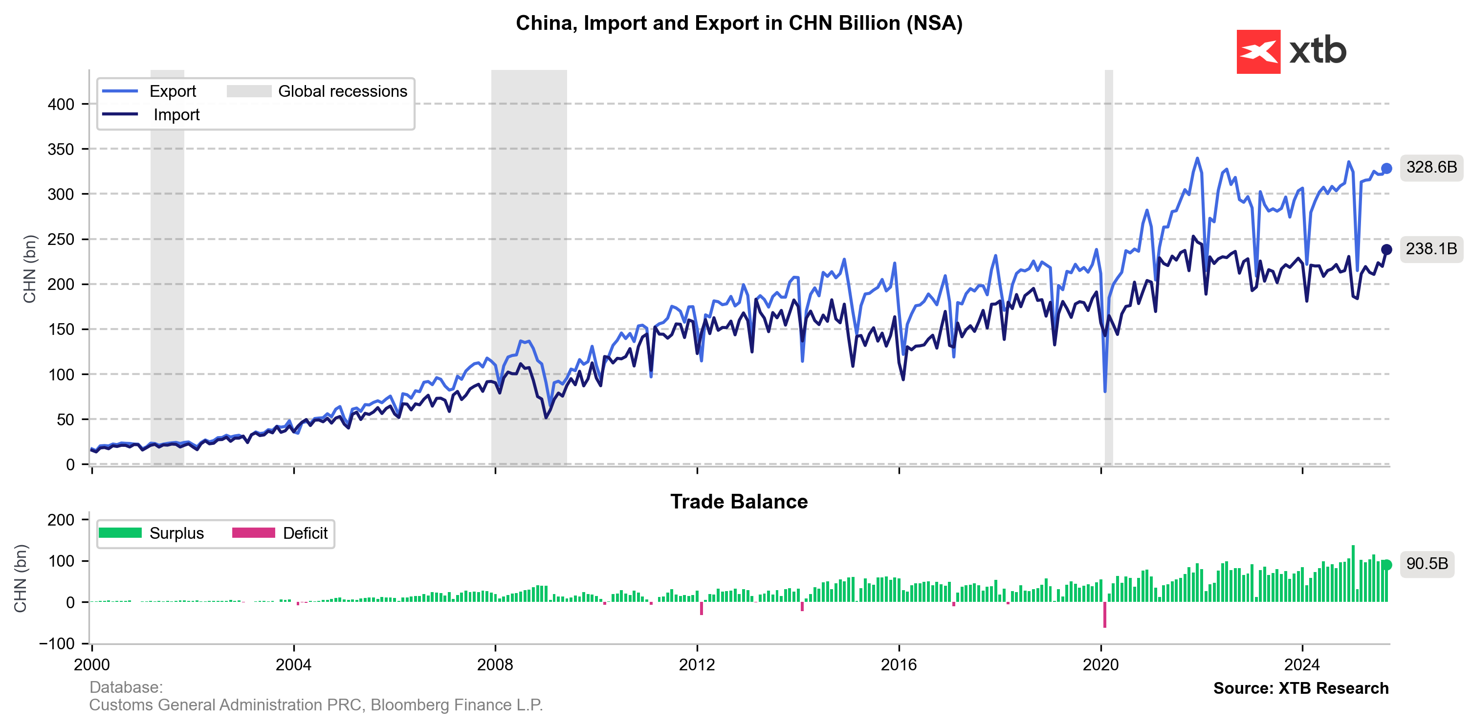 Data za prosinec 2024 zaznamenala v Číně výrazný nárůst exportu o 10,7 % oproti předchozímu roku, čímž překonala očekávání analytiků, kteří předpovídali růst kolem 7 %. Importy rovněž překvapily, když vzrostly o 1 %, navzdory očekávanému poklesu o 1,5 %. Tato data vedla k navýšení obchodního přebytku na 104,84 miliard USD, což je nejvyšší hodnota od února roku 2024. -