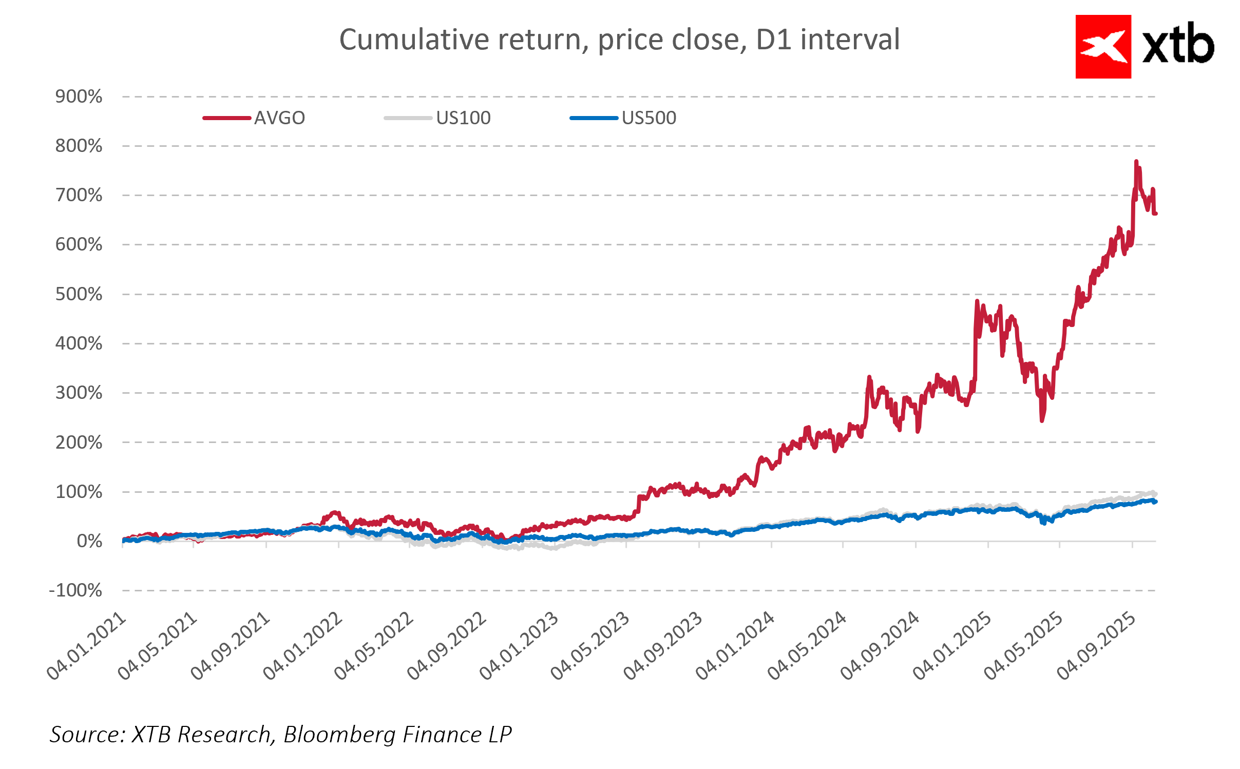 Pro Broadcom představuje tato zakázka jednu z největších a nejprestižnějších v historii firmy. Společnost, která byla dosud známá především výrobou síťových čipů a telekomunikačních řešení, se nyní stává významným hráčem na trhu infrastruktury pro umělou inteligenci. Od konce roku 2022 se akcie Broadcomu nacházejí v silném uptrendu, když jejich hodnota vzrostla téměř šestinásobně. Navíc tržby firmy rostou kvartál po kvartálu a každá výsledková zpráva potvrzuje rostoucí význam segmentu AI čipů. Partnerství s OpenAI tak dále posiluje Broadcom jako hlavního příjemce globálního boomu umělé inteligence.