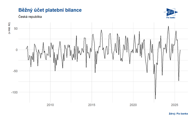 ČR: Běžný účet platební bilance za červen dosáhl -68,79 mld. Kč při očekávání -20,90 mld. Kč