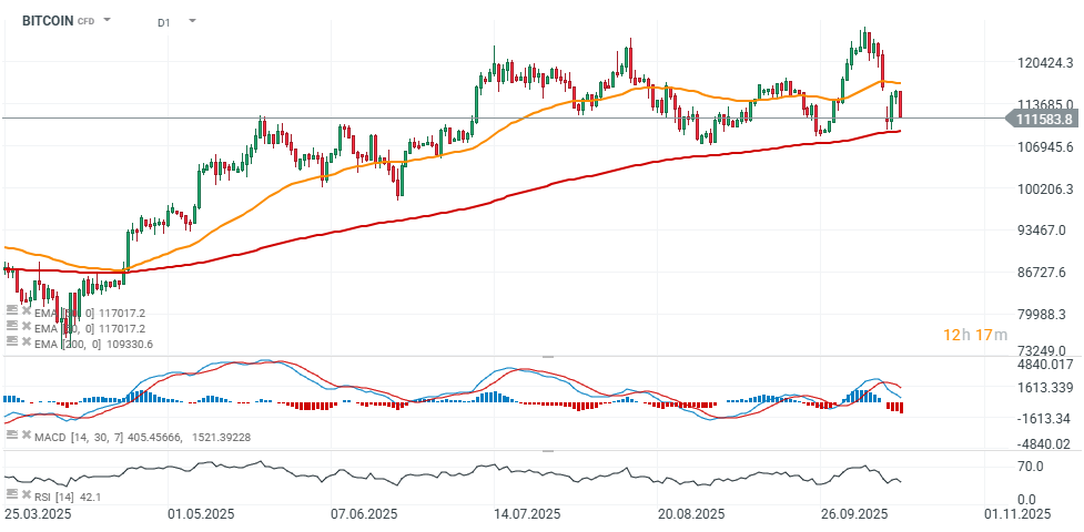 Cena Bitcoinu opět klesá směrem k 111 000 USD a aktuální korekce naznačuje, že medvědi mohou mít chuť otestovat nedávná minima kolem 108 000 USD.