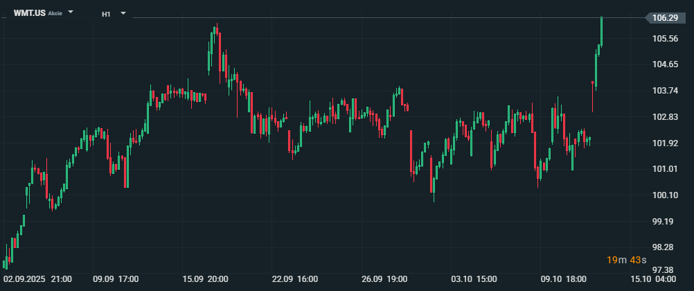 Společnost Walmart (WMT.US) posiluje v předobchodní fázi o více než 6,00 % poté, co zveřejnila dobré údaje za druhé čtvrtletí fiskálního roku 2025. Společnost Walmart je s 10 500 kamennými prodejnami v USA a působící ve více než 19 zemích jako platforma pro elektronické obchodování největším řetězcem supermarketů na světě. Silné výsledky tohoto gigantu za uplynulé čtvrtletí proto mohou potvrzovat dobrou kondici americké ekonomiky, zejména spotřebitelského sektoru. Přestože se výsledky týkají uplynulého čtvrtletí, Walmart zvýšil své prognózy i pro zbytek roku. -