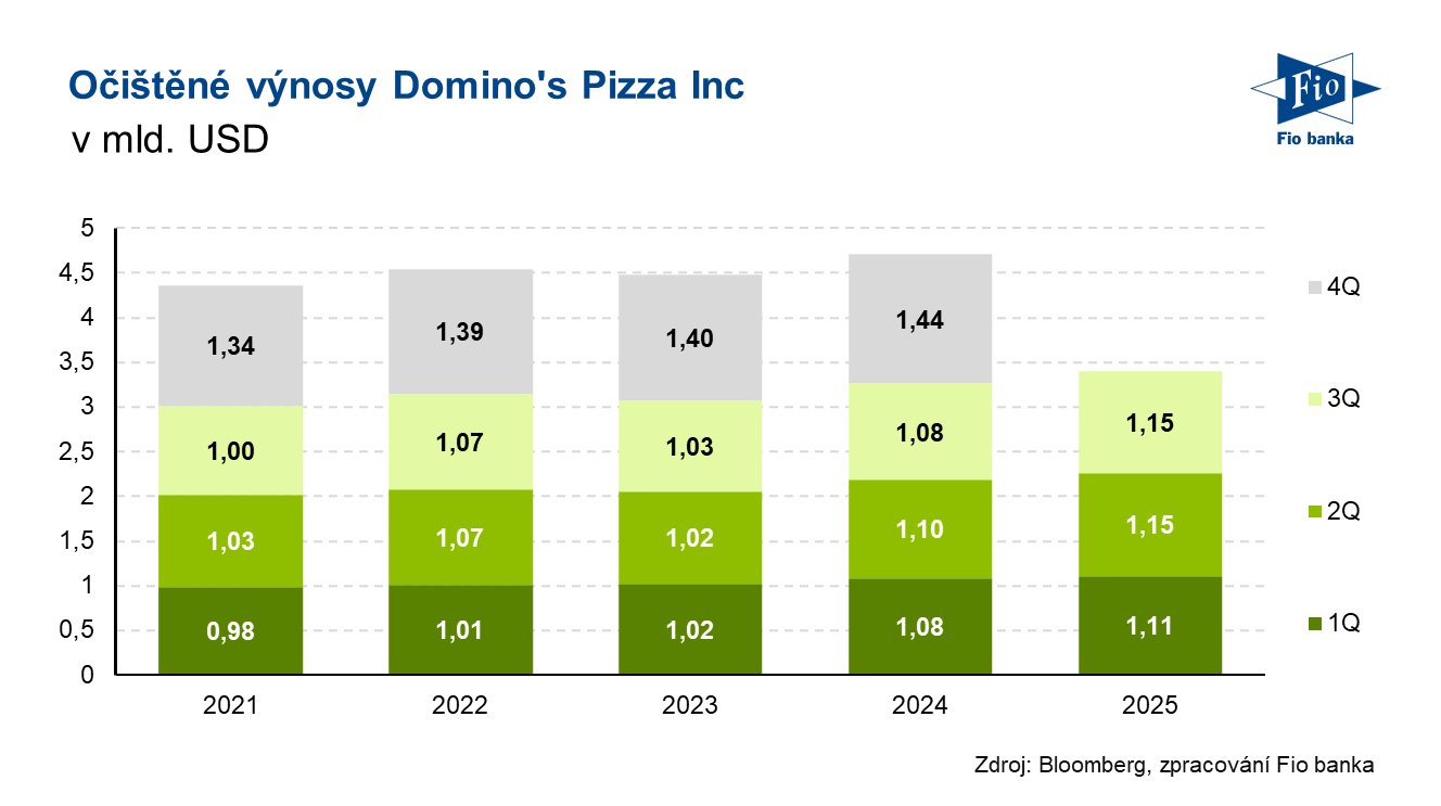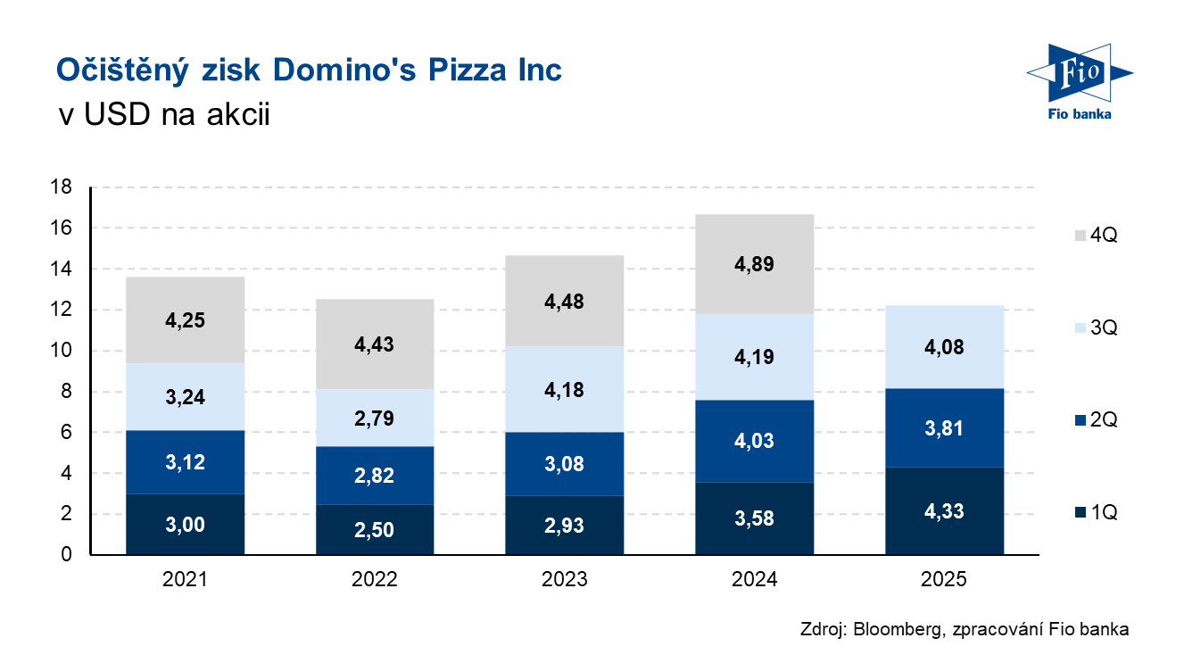 Klíčová slova: USA | Analytik | Dividendy | Akcie | Benchmark | Bloomberg | Cash flow | Dividendový výnos | Marže | P/E | Ukazatel | Výnos | Zisk na akcii | Zisková marže | USD | Zisk | Výsledky | EPS | Analytika | Banka | Fio banka | Cena | Fio | Odkup akcií | Cílová cena | Hrubá marže | Čistá zisková marže | Tržby | Hospodářské výsledky | Kapitalizace | Výhled | Konsensus | Odhady analytiků | Zpětný odkup akcií | Čistý zisk | Provozní zisk | Meziroční růst | Free cash flow | Vývoj | Růst | Domino’s Pizza | Domino’s Pizza (DPZ) | DPZ | Vedení společnosti | Výplata | DoorDash | Růst tržeb | Výhled na rok | Vývoj akcie | Výplata dividendy | Společnosti | Společnost | Výsledky společnosti | 3М | Řetězec | Řetězce | Jakub Němec | Dominos Pizza | Očištěný zisk na akcii | Fio banka, a.s. | Rok 2025 | Franšízy | Výhled na rok 2025 | Řetězec rychlého občerstvení | Domino’s | Pizza | Akče |