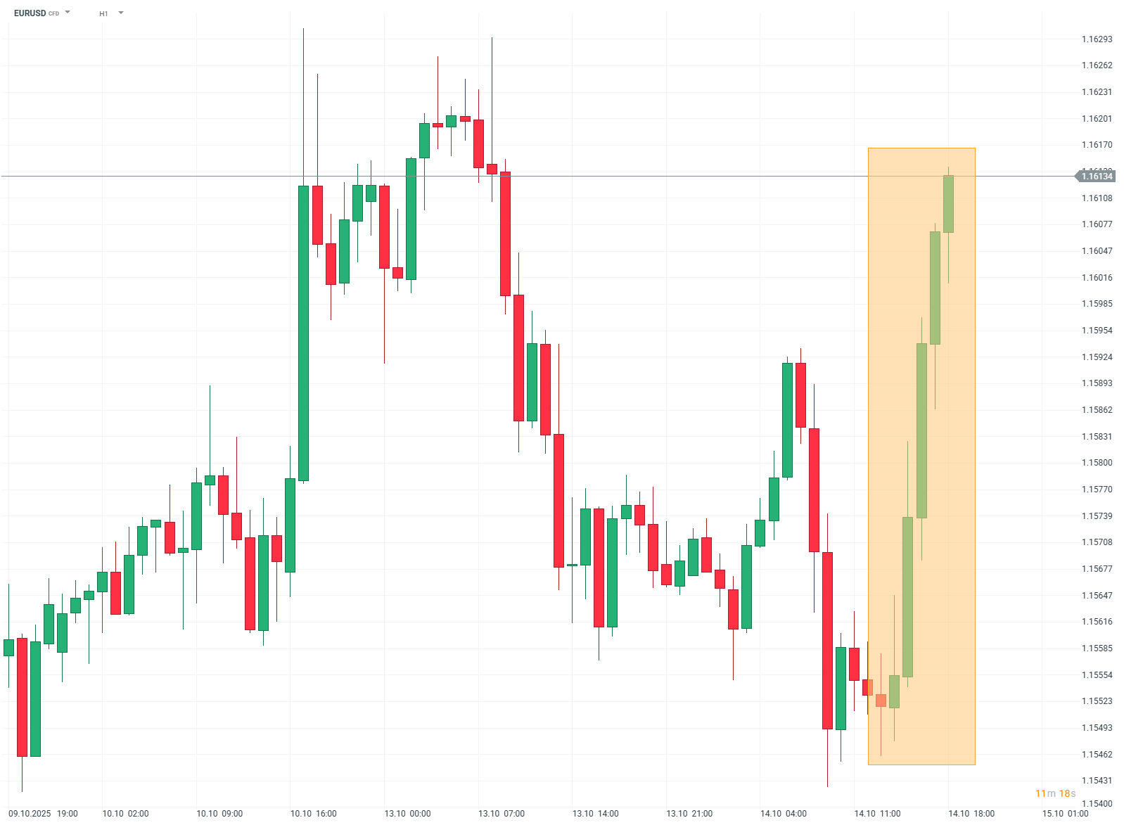 EURUSD roste o 0,8 % a dosahuje 1,5měsíčního maxima díky oslabujícímu americkému dolaru 📈