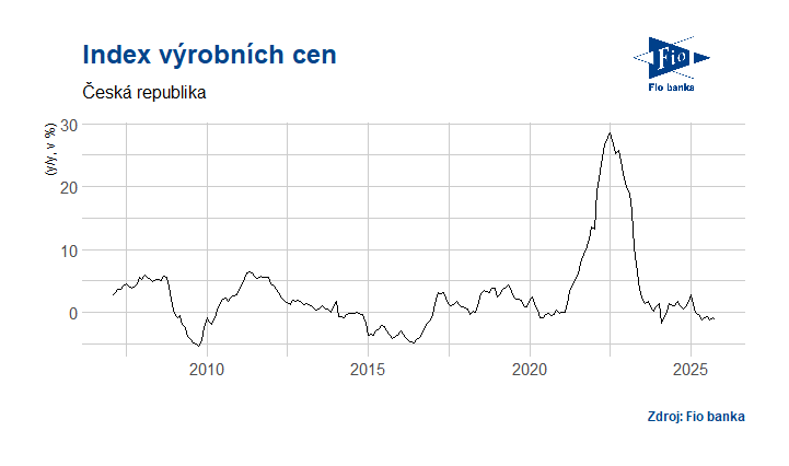 ČR: Index výrobních cen v srpnu meziročně klesl o 0,8 % při očekávání -0,9 %