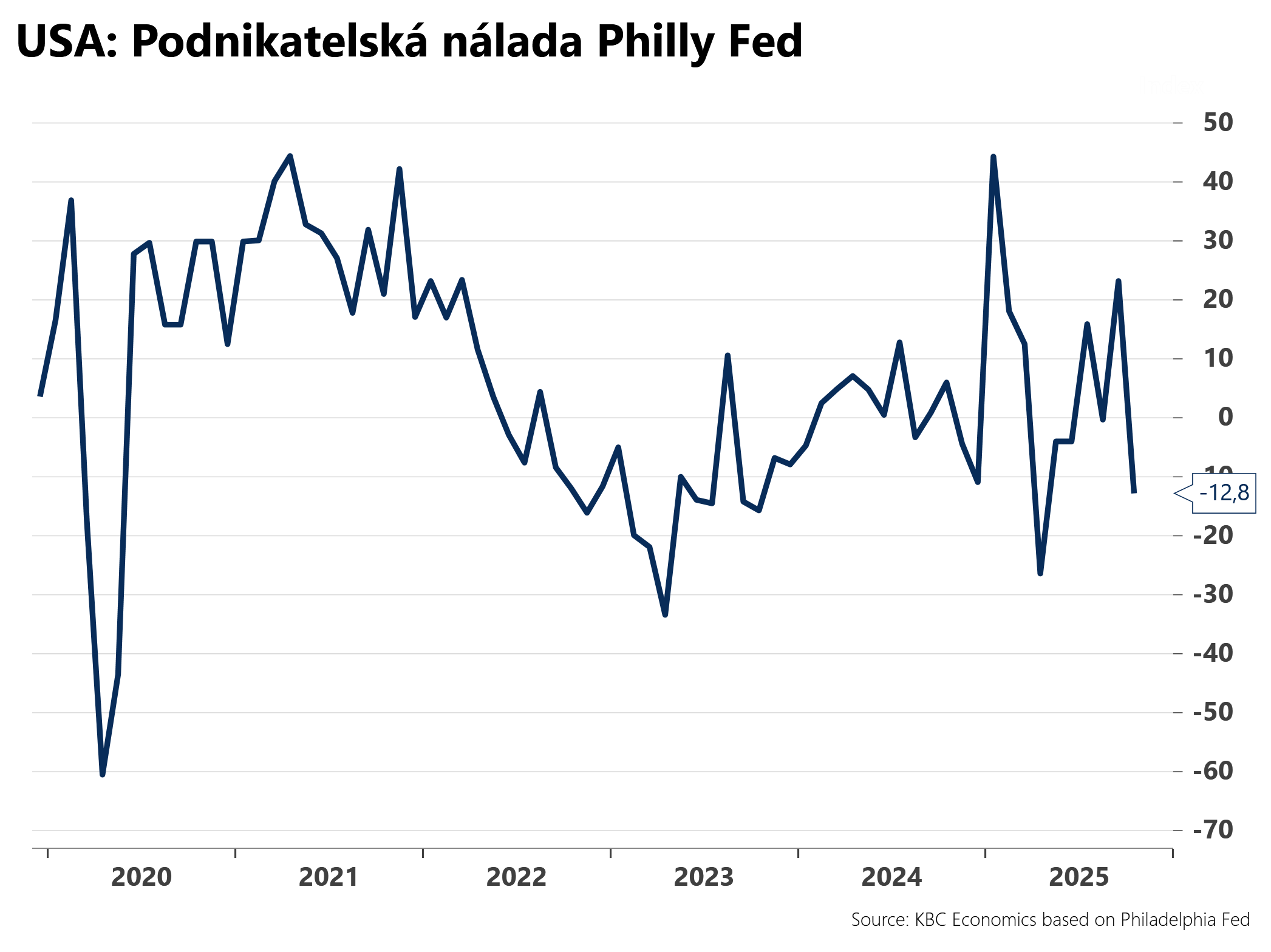 Podnikatelská nálada podle filadelfského Fedu v květnu klesla na 4,5 b. oproti 15,5 b. v dubnu. Trhy očekávaly pokles na 7,8 b. -