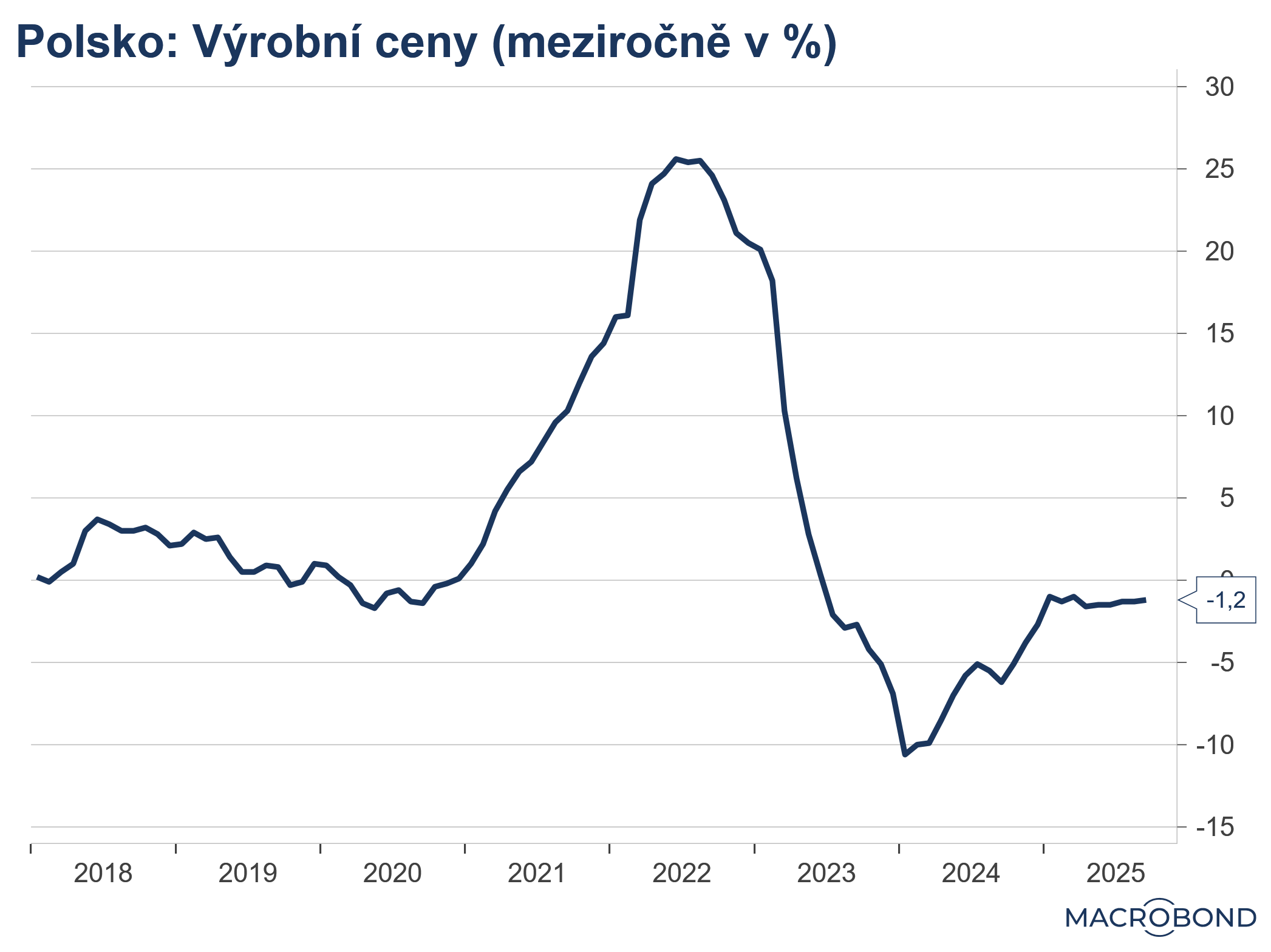Výrobní ceny v Polsku se v květnu snížily na 3,1 % meziročně oproti revidovaným 6,2 % v dubnu. Trhy očekávaly snížení na 4,5 % meziročně. -