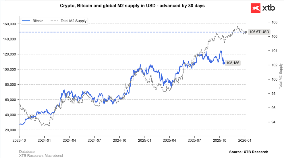 Pokud nové peníze zůstanou uzamčeny ve fiskálních deficitech nebo vládních dluhopisech, aniž by dorazily do reálné ekonomiky, samotný růst M2 nemusí stačit jako impuls pro riziková aktiva – včetně Bitcoinu.
