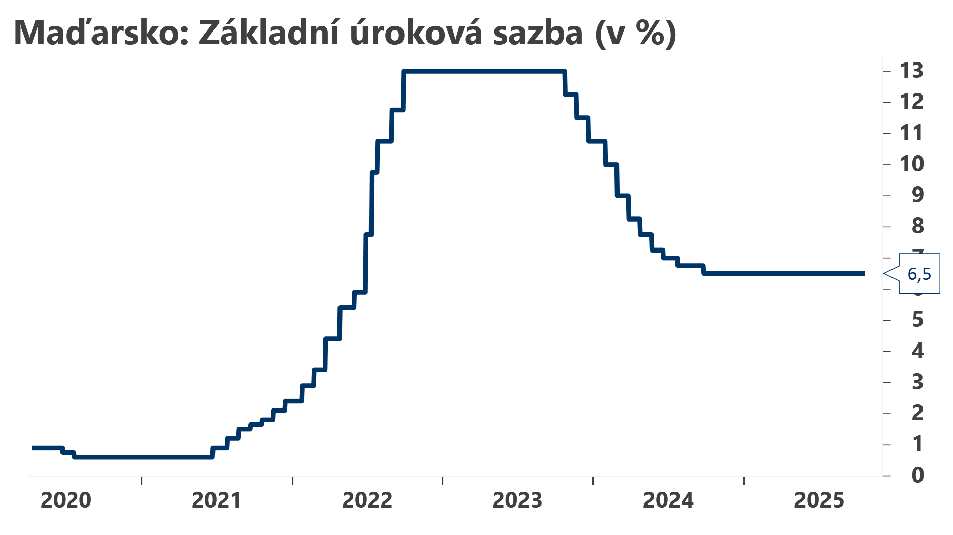 Maďarská centrální banka včera ponechala svoji základní úrokovou sazbu na úrovni 6,75 %, což vedlo ke zpevnění forintu, jelikož výrazná část trhu byla nastavena na snížení o 25 bazických bodů. Cyklus snižování sazeb ze strany MNB však ještě nekončí, neboť jak se uvádí v komentáři ke včerejšímu rozhodnutí - bankovní rada vidí prostor k opatrnému snižování sazeb v závislosti na chování hlavních centrálních bank v zahraničí a vývoji domácí inflace. Rovněž viceguvernér Virág na včerejší tiskové konferenci zmínil, že existuje prostor pro jedno až dvě snížení sazeb do konce roku, což je v zásadě v souladu s naším scénářem.