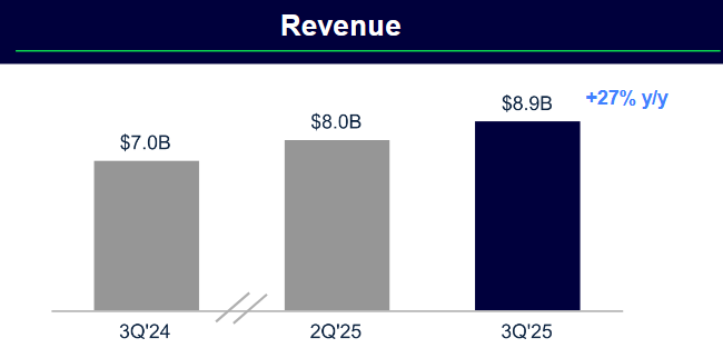 Očištěné tržby meziročně vzrostly o 26 % na 11,31 mld. USD.