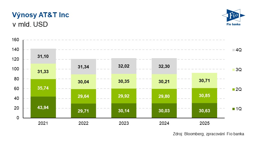 Klíčová slova: Analytik | Akcie | Bloomberg | Cash flow | Dividendový výnos | Investice | P/E | Ukazatel | Výnos | Zisk na akcii | USD | Zisk | Výsledky | EPS | Analytika | Banka | Fio banka | Cena | Fio | Trh | Cílová cena | EBITDA | Kapitalizace | Výhled | Konsensus | Výnosy | Očekávání | Očekávání trhu | Čistý zisk | AT&T | Hospodaření | Pokles | Zisk EBITDA | Provozní zisk EBITDA | Provozní zisk | Free cash flow | Vývoj | Růst | Růst výnosů | Vývoj akcie | Společnosti | Společnost AT&T | Společnost | Výsledky společnosti | 3М | Vital Knowledge | Jakub Němec | Telekomunikační společnost | Tržní odhad | Vice | ProCent | Očištěný zisk na akcii | Fio banka, a.s. | Rok 2025 | Volné hotovostní toky | Hotovostní toky |