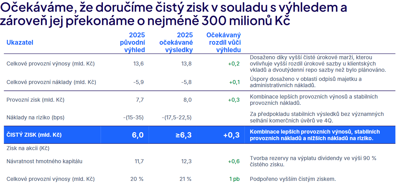 Výsledky hospodaření Moneta Money Bank za 3Q 2025 | |||