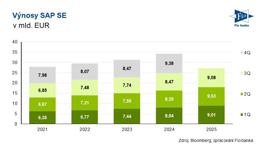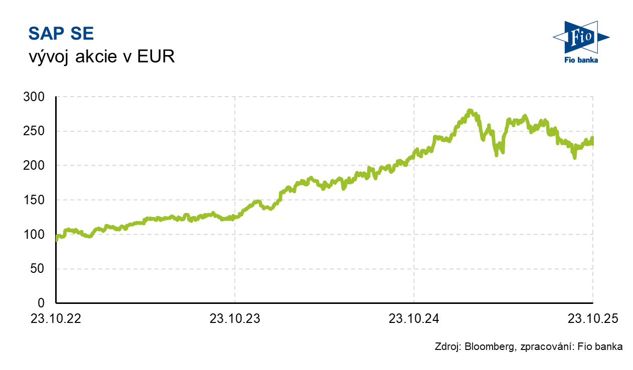 Německá softwarová společnost SAP včera večer zveřejnila hospodářské výsledky za třetí kvartál roku 2025. Výsledky byly obecně podle očekávání. Analytici upozornili na optimistický komentář vedení během konferenčního hovoru, avšak podle Bloombergu se investoři zaměřili na upřesnění celoročního výhledu v očištěných výnosech z cloudu, které teď společnost predikuje na dolní hraně původního výhledu 21,6 až 21,9 mld. EUR.
