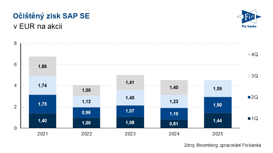 Klíčová slova: Analytik | Akcie | Bloomberg | Dividendový výnos | Marže | P/E | Ukazatel | Výnos | Zisk na akcii | Analytici | EUR | Investoři | Business | Zisk | Výsledky | EPS | Akcie SAP | Analytika | Banka | Fio banka | Cena | Fio | JP Morgan | Trh | Cílová cena | Hrubá marže | ROCE | Bernstein | Hospodářské výsledky | Citi | Kapitalizace | Výhled | Konsensus | Výnosy | Očekávání | Obavy investorů | Čistý zisk | Objem | Generální ředitel | Ziskovost | Vývoj měnových párů | SAP | Provozní zisk | Finanční ředitel | Meziroční růst | Zpomalení růstu | Zlepšení | FCF | Vývoj | Růst | Umělá inteligence | Podíl na trhu | Růst výnosů | Umělé inteligence | Objem zakázek | Softwarová společnost | AI | Společnosti | Společnost | Výsledky společnosti | Celoroční výhled | 3М | Makroekonomické prostředí | Marka | Christian Klein | Překážky | Komentář vedení | Očištěný zisk na akcii | Výkon | Fio banka, a.s. | Michal Bárta | Společnost SAP | Volné hotovostní toky | Hotovostní toky |