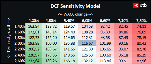 Konečná míra růstu byla odhadnuta na 2 %. Ostatní finanční parametry byly zprůměrovány na základě výsledků za posledních pět let.