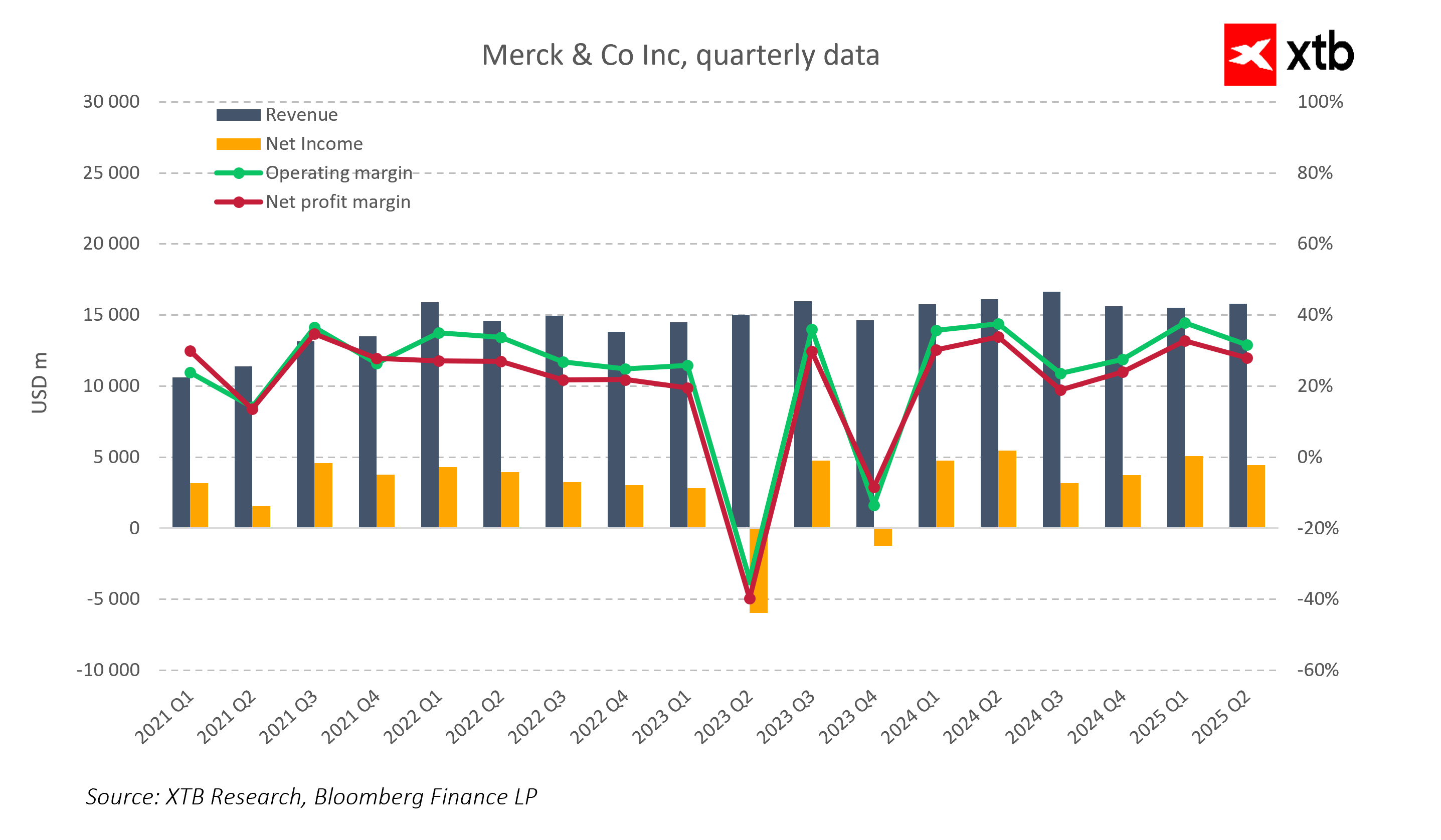Navzdory dočasným obtížím vykazuje společnost Merck pevné finanční základy. Ačkoli marže v jednotlivých čtvrtletích občas poklesly, celková ziskovost zůstává vysoká, přičemž provozní a čistá marže se pohybují mezi 25 % a 35 %. To potvrzuje účinnost nápravných opatření a odolnost obchodního modelu.