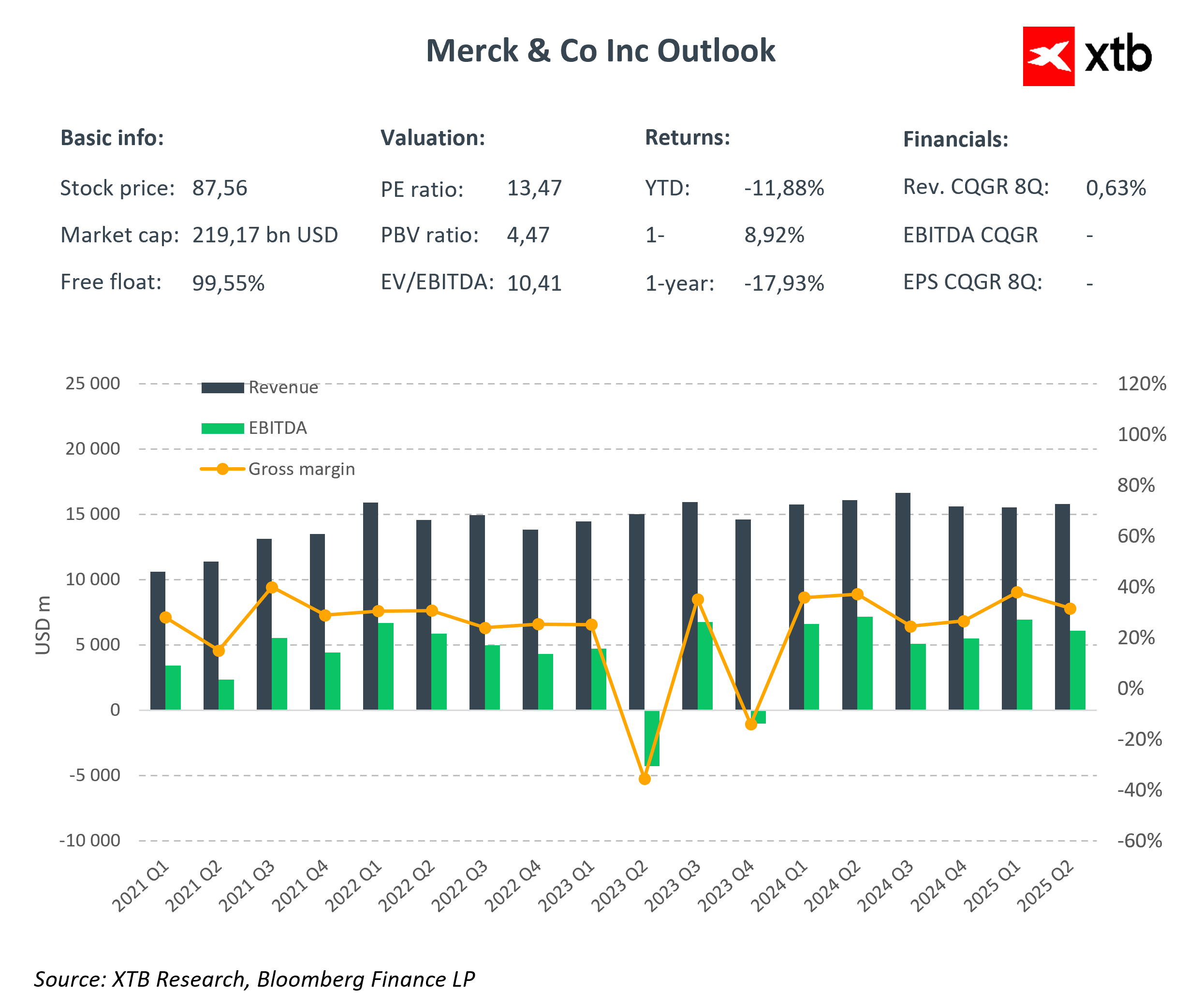 Merck si zachovává defenzivní charakter a nízkou volatilitu, takže současnou slabost lze považovat za dočasné podhodnocení. Stabilní fundamenty, silné cash flow a konzistentní dividendová politika činí společnost atraktivní pro dlouhodobé investory. Merck & Co zůstává jedním z předních hráčů v globálním farmaceutickém sektoru a posiluje svou pozici prostřednictvím vývoje inovativních onkologických terapií.