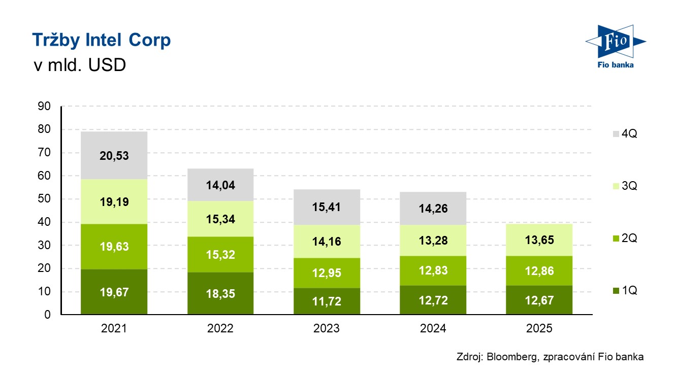 Výrobce čipů Intel zveřejnil hospodářské výsledky za 3. čtvrtletí roku 2025. Jak tržby, tak i očištěný zisk na akcii byly nad odhady analytiků. Agentura Bloomberg vyzdvihla, že se společnost vrátila k ziskovosti a zároveň zveřejnila silný výhled tržeb, což podle ní naznačuje, že obrat firmy nabírá na síle.