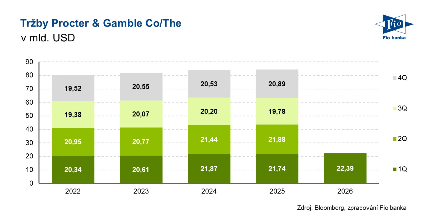 Americký výrobce spotřebního a drogistického zboží Procter & Gamble reportoval hospodářské výsledky za 1. čtvrtletí fiskálního roku 2026, které skončilo 30. září 2025. Společnost vykázala organický růst tržeb o 2 %, čímž překonala průměrný odhad analytiků na úrovni 1,42 %.