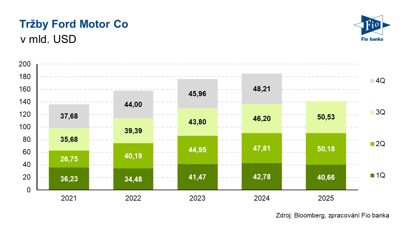 - Divize Ford Credit (odnož finančních služeb) reportovala meziroční růst tržeb o 7,1 % na 3,35 mld. USD.