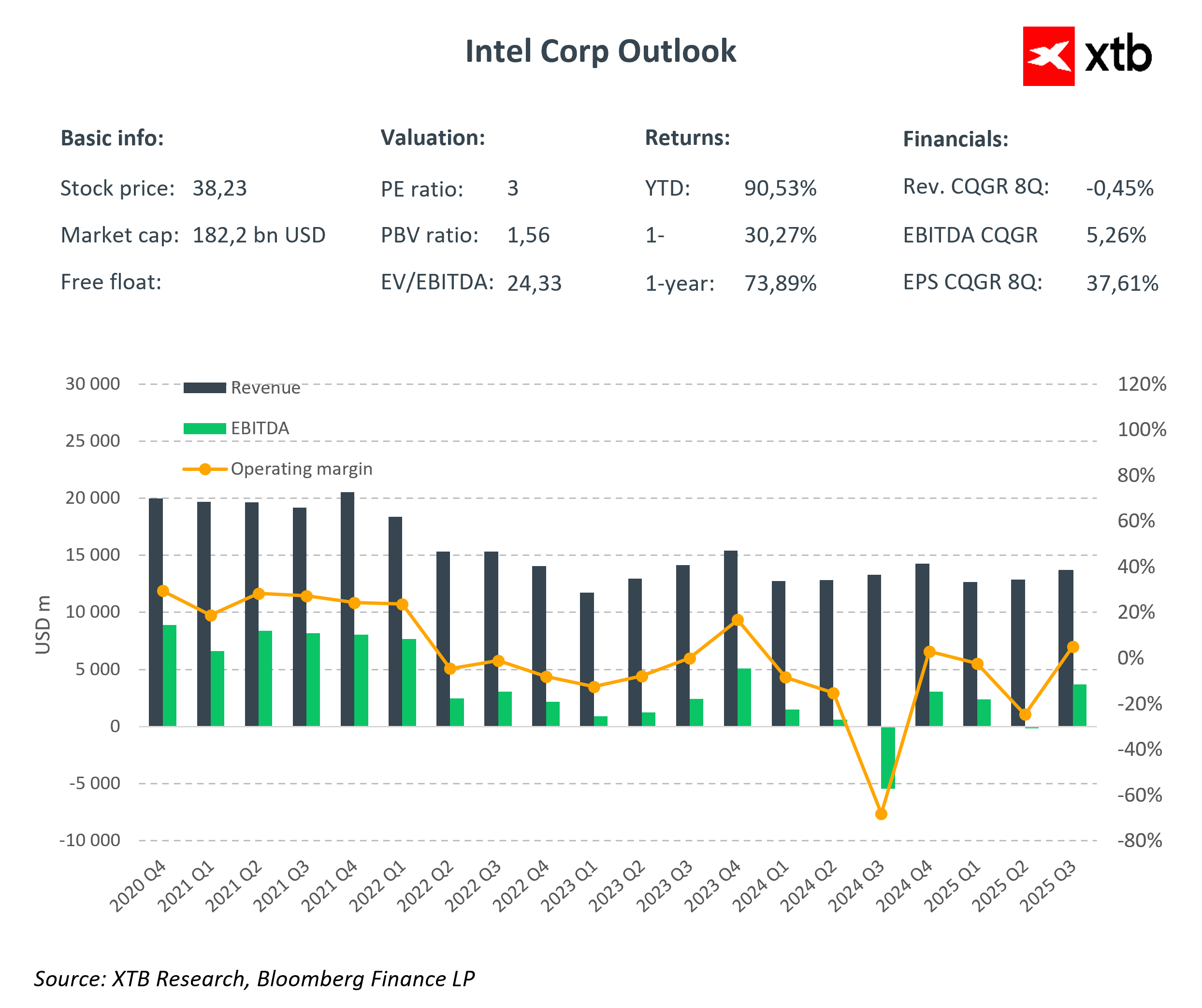 Navzdory výzvám při zavádění nových výrobních procesů a silné konkurenci na trhu s polovodiči vykazuje společnost jasné známky stabilizace a odhodlání pokračovat v růstu. Intel je čím dál více vnímán jako příklad firmy, která díky důsledné restrukturalizaci, podpoře strategických partnerů a zaměření na inovativní segmenty s vysokou marží dokáže znovu vybudovat svou pozici v odvětví. Důležité je, že investoři zjevně věří v úspěšné zotavení Intelu. Od začátku roku 2025 akcie společnosti výrazně překonávají hlavní tržní indexy, což odráží rostoucí přesvědčení trhu, že zvolená strategie přináší očekávané výsledky.