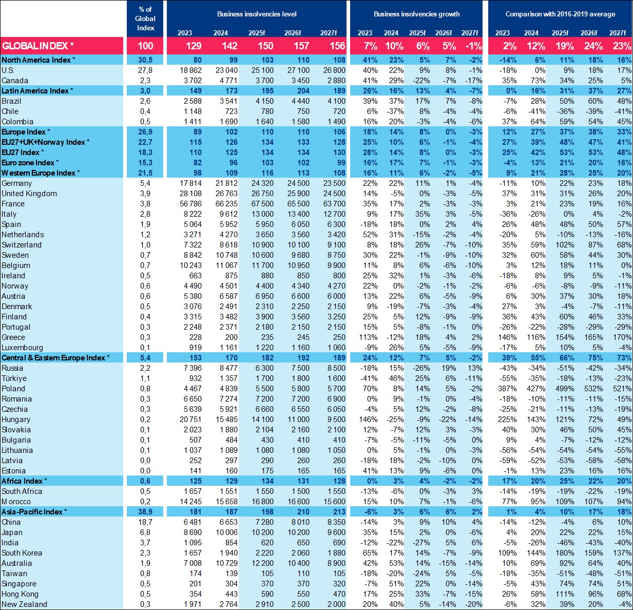 Údaje za dosavadní část roku již ukazují výrazný nárůst počtu insolvencí ve všech regionech, zejména v Asii a západní Evropě. Největší skok nastal v Itálii, kde se počet podniků v insolvenci zvýšil o 38 % a ve Švýcarsku o 26 %. „Přední světové ekonomiky vykazují smíšené trendy: Německo pravděpodobně zaznamená růst o 11 %, Čína o 9 %, USA o 5 %, Japonsko o 2 % a ve Velké Británii se situace oproti loňsku prakticky nezměnila. Počet společností v insolvenci naopak meziročně klesl v Indii o 27 %, v Rusku o 26 %, v Kanadě o 22 % a například v Nizozemsku o 15 %. Růst insolvencí v příštím roce budou opět pohánět dvě nejsilnější ekonomiky – USA a Čína. Ty zaznamenají další nárůst insolvencí podniků o 8 %, resp. 10 %. Západní Evropa mezitím již v příštím roce zaznamená mírný pokles o 2 %,“ vysvětluje Kateřina Kirakosjan, vedoucí oddělení pohledávek české pobočky Allianz Trade.