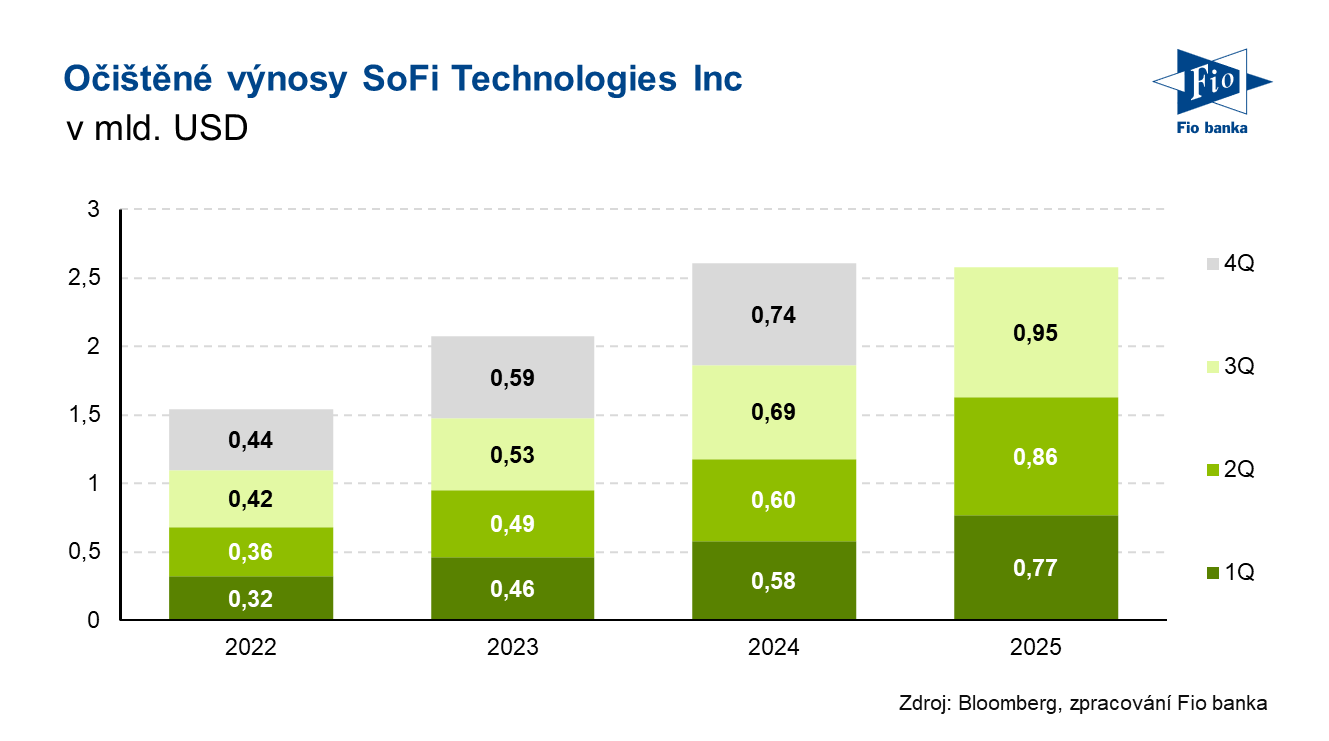 Americká společnost SoFi Technologies, která se zabývá osobními financemi a finančními technologiemi, včera před otevřením trhů zveřejnila výsledky za třetí kvartál roku 2025. Společnost zaznamenala meziroční růst očištěných výnosů o 38 % a navýšila svůj celoroční výhled. Vedení společnosti očekává, že počet členů v celém roce 2025 vzroste o alespoň 3,5 mil., což reprezentuje meziroční nárůst o přibližně 34 %.