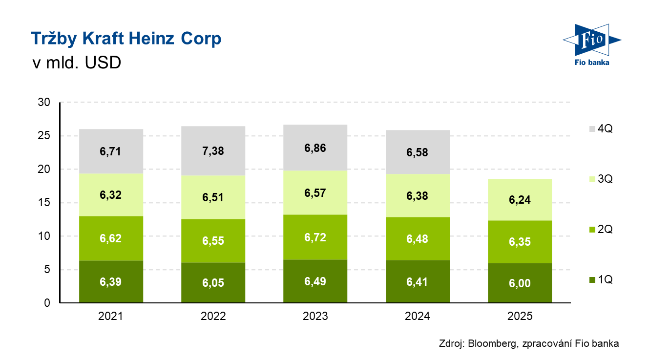 Americká potravinářská společnost reportovala výsledky hospodaření za třetí kvartál 2025. Společnost reportovala pokles organických tržeb, očekávání nenaplnily výsledky rozvíjejících se trhů. Vedení Kraft Heinz rovněž přistoupilo ke snížení výhledu.