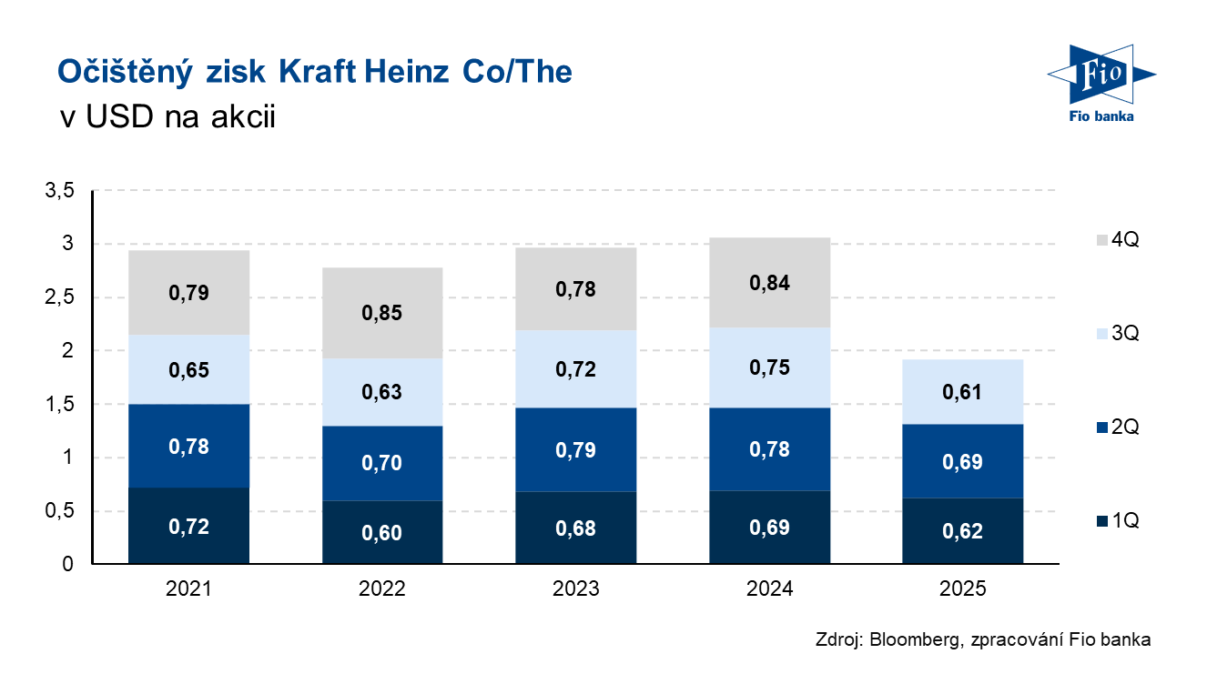 Klíčová slova: Akcie | Bloomberg | Dividendový výnos | Marže | P/E | Ukazatel | Výnos | Zisk na akcii | USD | Zisk | Výsledky | EPS | Banka | Fio banka | Cena | Fio | Trh | Cílová cena | Hrubá marže | Tržby | Podnikání | Kapitalizace | Výhled | Konsensus | Očekávání | Čistý zisk | Ztráta | Kraft Heinz (KHC) | Kraft Heinz | Hospodaření | Výsledky hospodaření | Trhy | Pokles | Provozní zisk | Vývoj | Růst | Vývoj akcie | Projekce | Společnosti | Společnost | Výsledky společnosti | 3М | Potravinářská společnost | Jakub Němec | Očištěný zisk na akcii | Fio banka, a.s. | Rok 2025 | Volné hotovostní toky | Hotovostní toky | America |