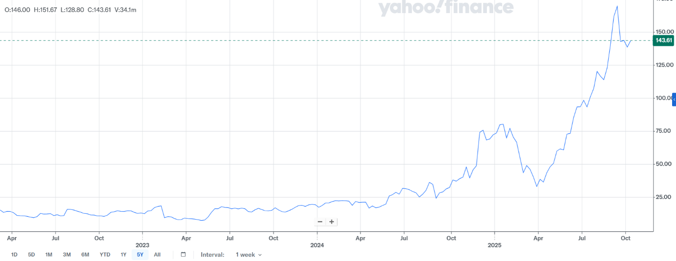 Za vznikem Creda, giganta ovládajícího 88% tržní podíl v segmentu aktivních elektrických kabelů (AEK) – technologie umožňující superrychlou komunikaci mezi AI servery – stáli v roce 2008 bývalí inženýři společnosti Marvell. Dnes, pod vedením generálního ředitele Billa Brennana, firmu reflektuje tržní kapitalizace v hodnotě přibližně 25 miliard USD. Pro srovnání, po vstupu na burzu v roce 2022 činilo toto číslo 1,4 miliardy USD. Jde tedy o zásadní rozdíl – samozřejmě v pozitivním světle – který nabral na obrátkách v roce 2024, kdy cena akcií Creda vzrostla o 270 %. Aktuálně, v roce 2025, firma zatím odměnila akcionáře o dalších více než 100 %. Investiční perspektivu v ní zároveň vidí i světově známá banka JPMorgan, která nově změnila její rating na buy, a to s cílovou cenou 165 USD (v době psaní článku byla cena přibližně 140 USD).