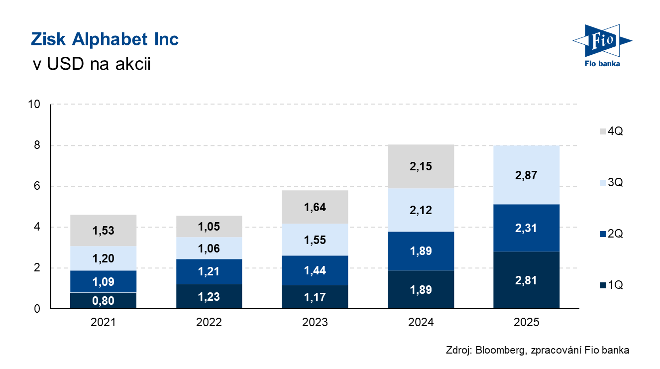 Klíčová slova: Investujeme | Akcie | Bloomberg | CEO | Dividenda | Dividendový výnos | Marže | P/E | Ukazatel | Výnos | Wall Street | Zisk na akcii | Analytici | Banky | USD | Barclays | Zisk | Výsledky | Obchodovat | EPS | Banka | Fio banka | Cena | Fio | Odkup akcií | Sázky | Cílová cena | Provozní marže | ROCE | Komise | Dostatek hotovosti | Pokles výnosů | Kapitalizace | Výhled | Konsensus | Výnosy | Očekávání analytiků | Alphabet | Konsenzus | Očekávání | NEST | Zpětný odkup akcií | Konglomerát | Kapitálové výdaje | GOOGL | Čistý zisk | Objem | Generální ředitel | Ředitelka | Ztráta | Hospodaření | Výsledky hospodaření | Google | 100 miliard dolarů | Pokles | Provozní zisk | Meziroční růst | Akcie Alphabet | Výdaje | FCF | Zrychlení růstu | Vývoj | Růst | Alphabet (GOOGL) | Umělá inteligence | Růst výnosů | ONE | Umělé inteligence | JDE | Waymo | Představenstvo | Sundar Pichai | Fitbit | Zveřejnění výsledků | API | Příležitosti | AI | Odvětví | Google Play | Společnosti | Finanční ředitelka | Gemini | Společnost | Výsledky společnosti | 3М | Rozšíření | Vital Knowledge | Digitální reklamy | Vice | Společnost Alphabet | Platforms | Hardware | Konglomerát Alphabet | Akcie třídy | Fio banka, a.s. | Michal Bárta | Navýšení | Náklady | Google Cloud | YouTube | Volné hotovostní toky | Hotovostní toky | Other Bets | Autonomní vozidla |