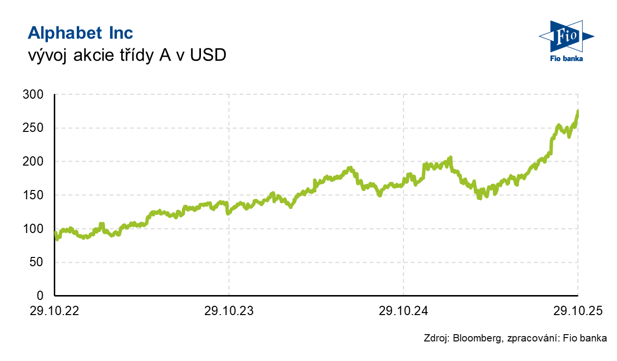 Technologický konglomerát Alphabet zveřejnil své výsledky hospodaření za třetí kvartál roku 2025. Společnost reportovala výnosy nad očekáváním. Provozní zisk negativně ovlivnila pokuta od Evropské komise. Analytici kladně hodnotili růst Google Cloud, který zaznamenal meziroční růst výnosů o 34 %. Alphabet z důvodu přetrvávající poptávky podruhé v řadě navýšil výhled kapitálových výdajů, které by v celém roce měly činit 91 až 93 mld. USD. Finanční ředitelka také uvedla, že v roce 2026 očekává výrazné navýšení kapitálových výdajů, avšak více podrobností společnost poskytne s výsledky za 4Q.