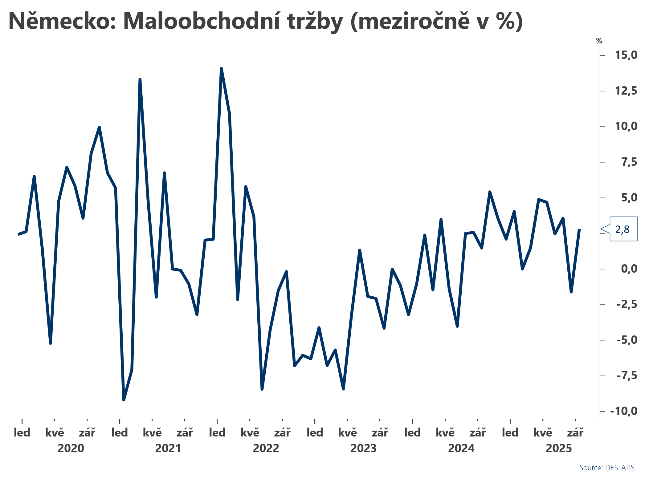 Maloobchodní tržby v březnu klesly o 13,1 % meziročně oproti poklesu o 10,1 % v únoru. Trhy očekávaly pokles o 13 % meziročně.