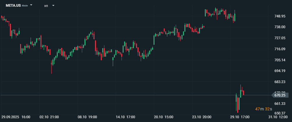Akcie Meta během jediného dne ztratily přes 10 %, což odpovídá poklesu tržní hodnoty o téměř 200 miliard USD. Investoři se obávají, že firma nedokáže včas zpeněžit své AI investice. Zatímco její hlavní reklamní byznys je stabilní, monetizace nových AI platforem zůstává nejasná. Analytici nyní bedlivě sledují, zda Meta dokáže přeměnit tyto investice na nové zdroje příjmů, jako jsou personalizované reklamy nebo korporátní AI služby. Zdroj: xStation5