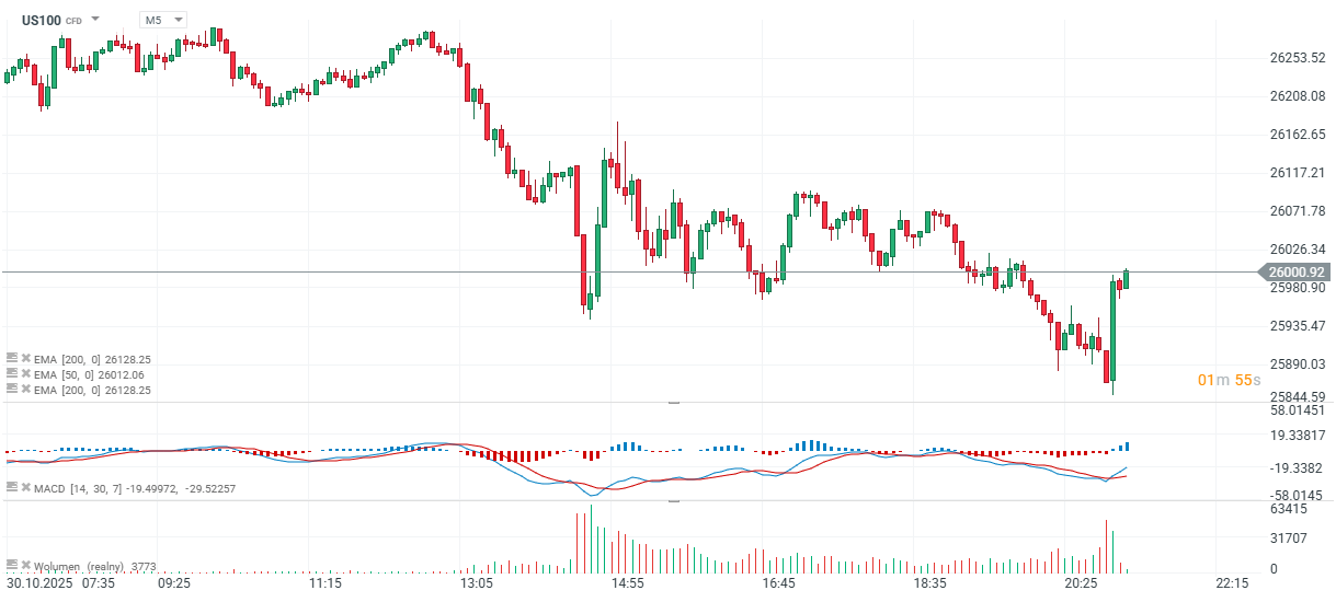 US100 ztrácí 0,5 % 📉 Pokles akcií Meta pokračuje kvůli obavám z výdajů na AI a komentářům Deutsche Bank